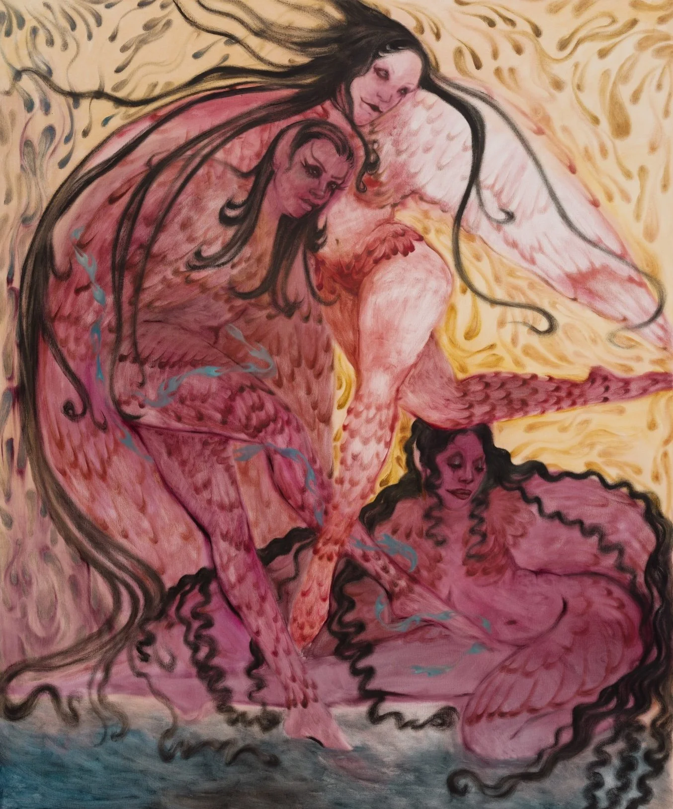 Naudline Pierre is easily one of my favourite artists, and her solo booth at Frieze this year was truly a highlight for me. Her jewel-toned paintings are rooted in mythology and have this ethereal aura about them. In Aquatican Song, winged figures embrace against a fantastical backdrop, appearing before a body of water. What I love about this painting is its softness, conveyed not only by the colour palette but also by the swirling brushwork and overall composition. Pierre successfully reimagines Renaissance portraiture, portraying Black femininity in a way that feels entirely new. Five stars.