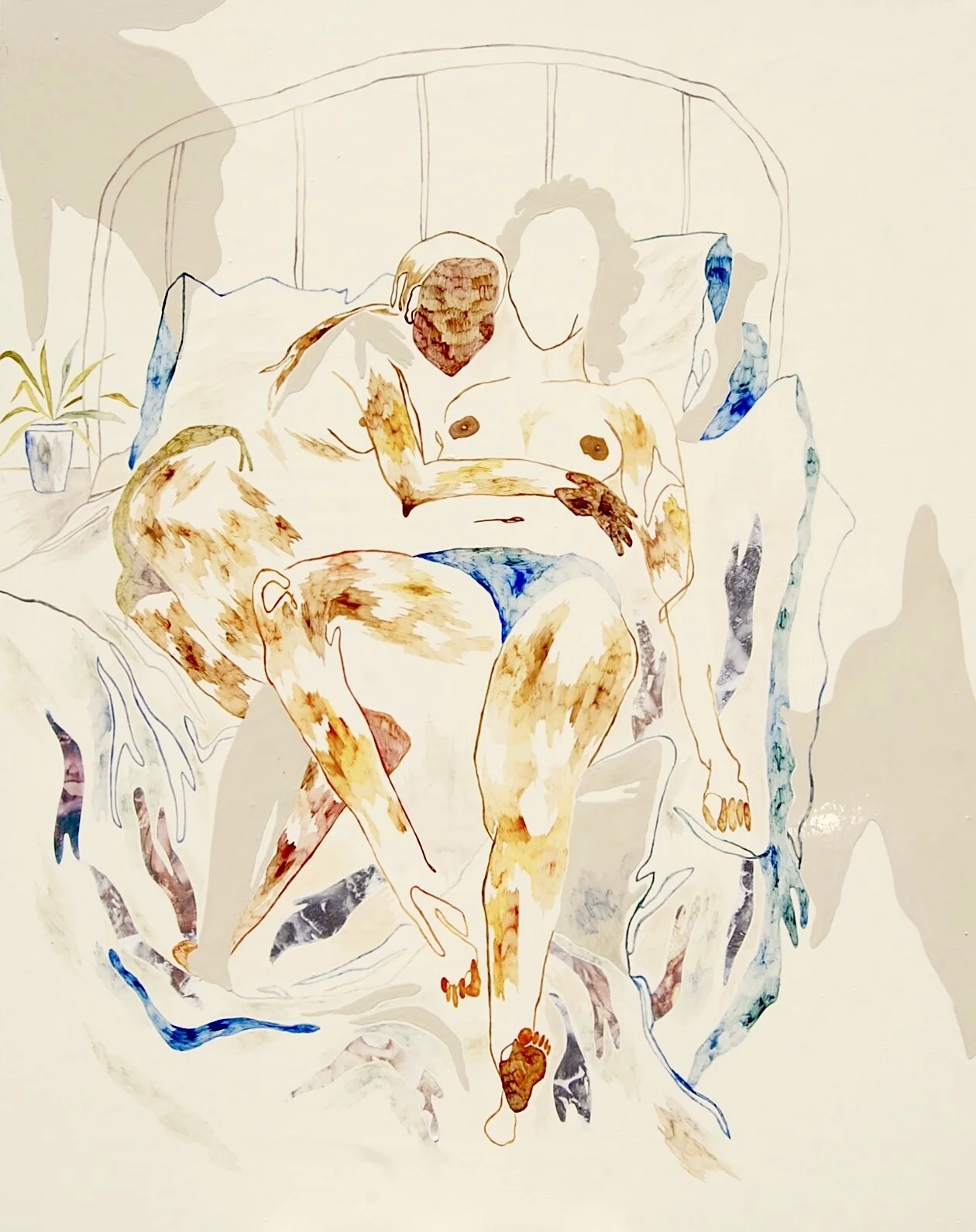 Miranda: I think it's just about being able to see myself. I felt so alienated from painting, never seeing myself, and if I did, it wasn’t by someone like me. It seems really obvious to say, but I just want to see women how I see myself, how I see my friends and the people I'm in relationships with. The idea of just having your body hanging out. (laughs) Everyone's always like, "Oh my God, don't draw in my rolls, my boob looks weird from this angle.”