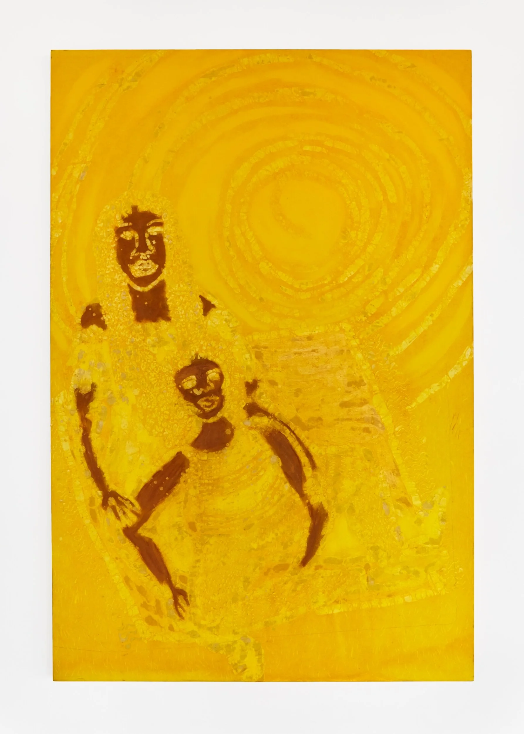 Sola: (laughs) I think it’s kind of linked. When I was working with blue, I had blue hair. Yeah, I started with blue and that was kind of a phase because I really liked the way it complimented black and brown skin tones. Then because I was working with dye, I kind of moved on. I started initially using turmeric to dye my canvas, that didn't work out, but I still liked the yellow. I feel like I see my work thematically, the blue was all about dancing and club nightlife. The yellow is about love and joy and couples and romance.