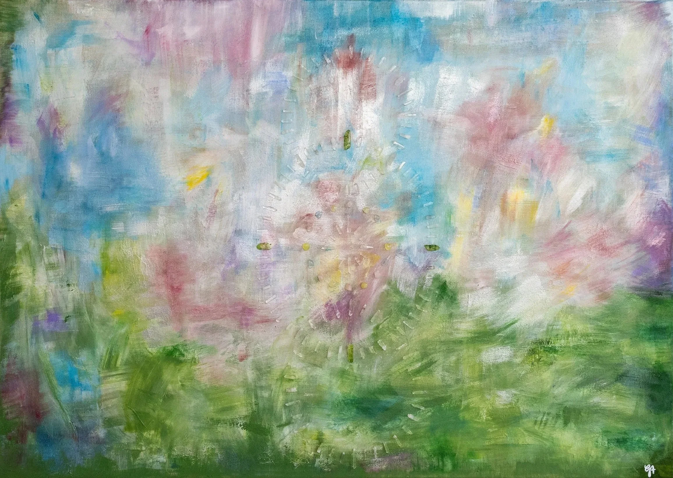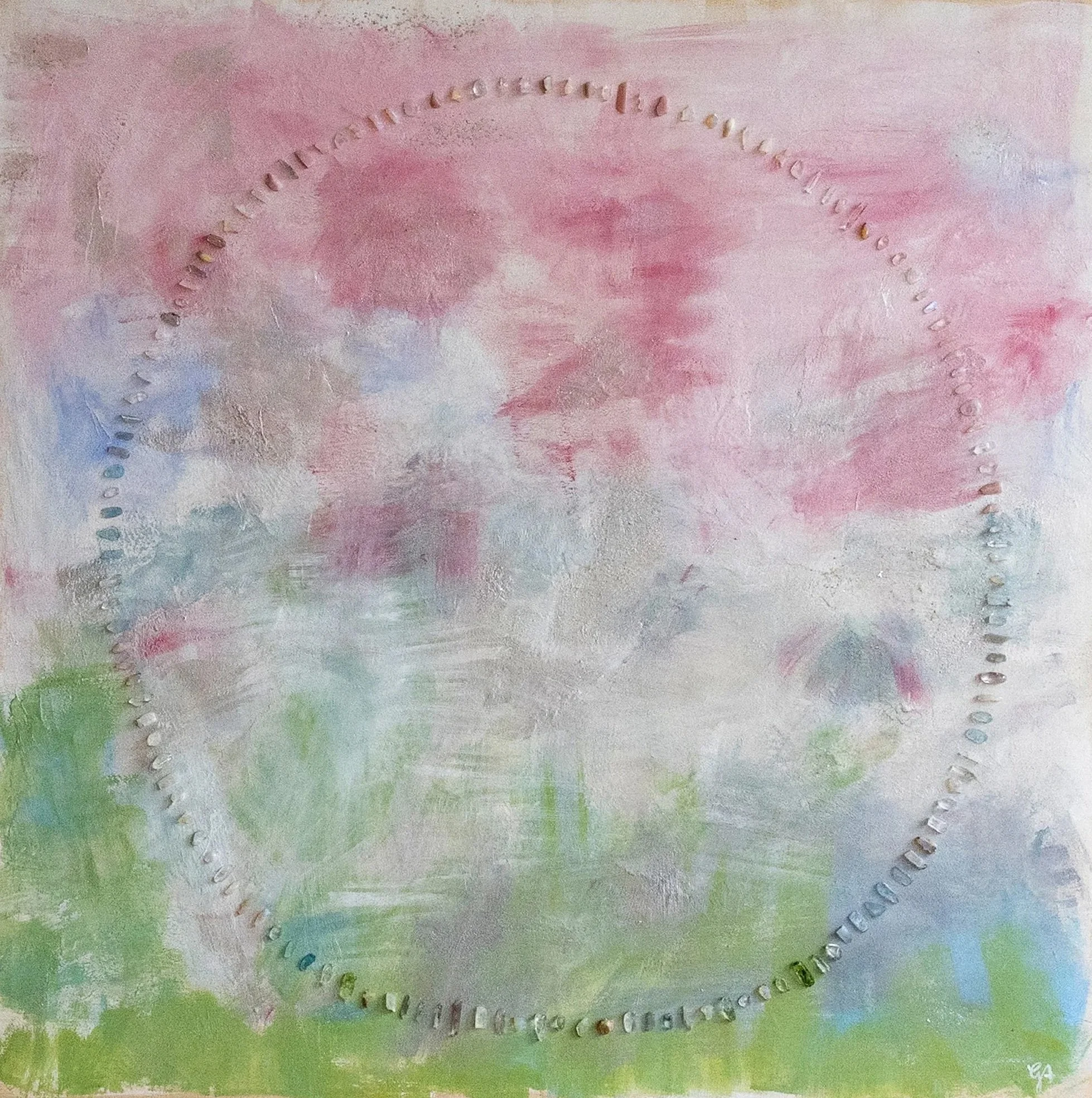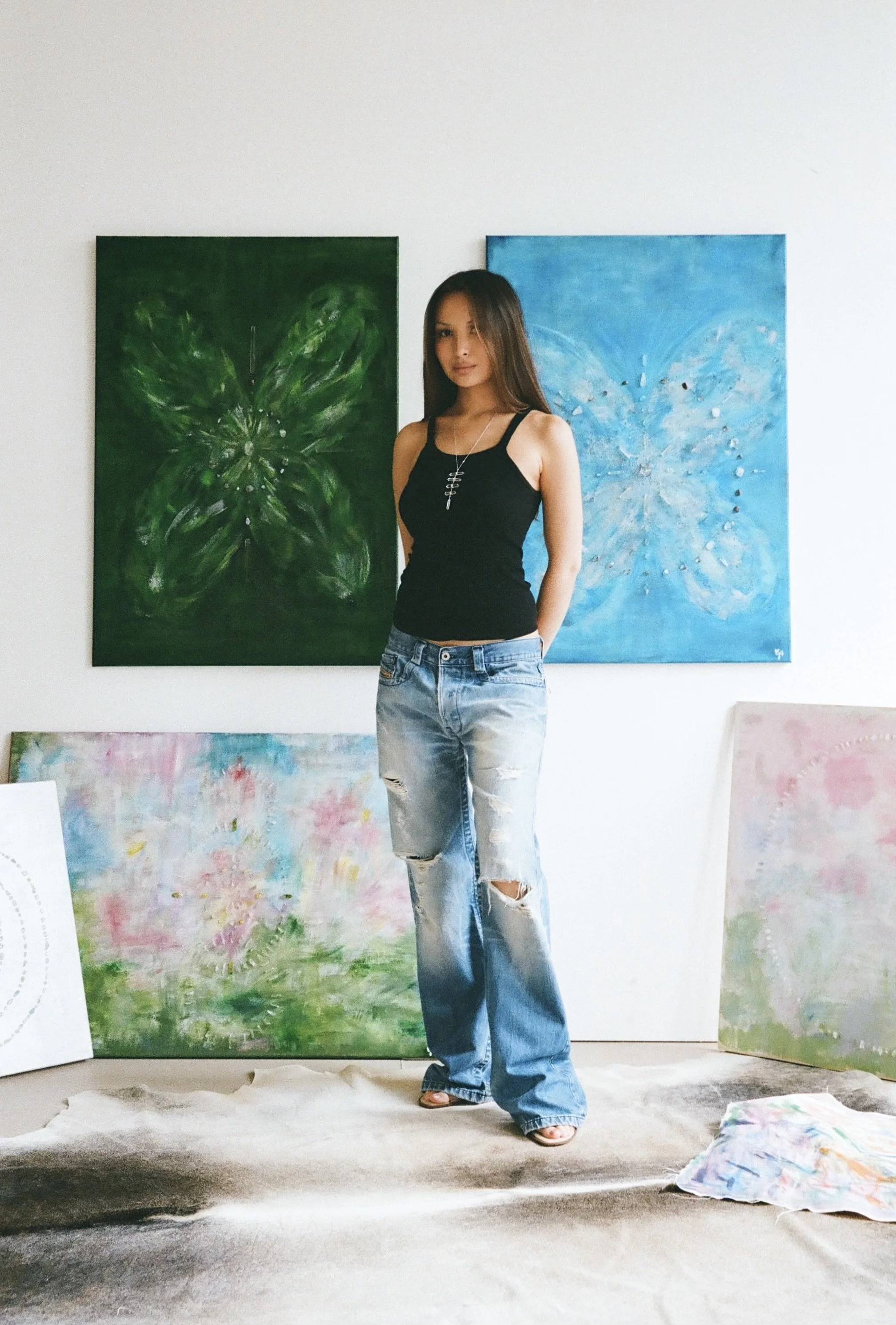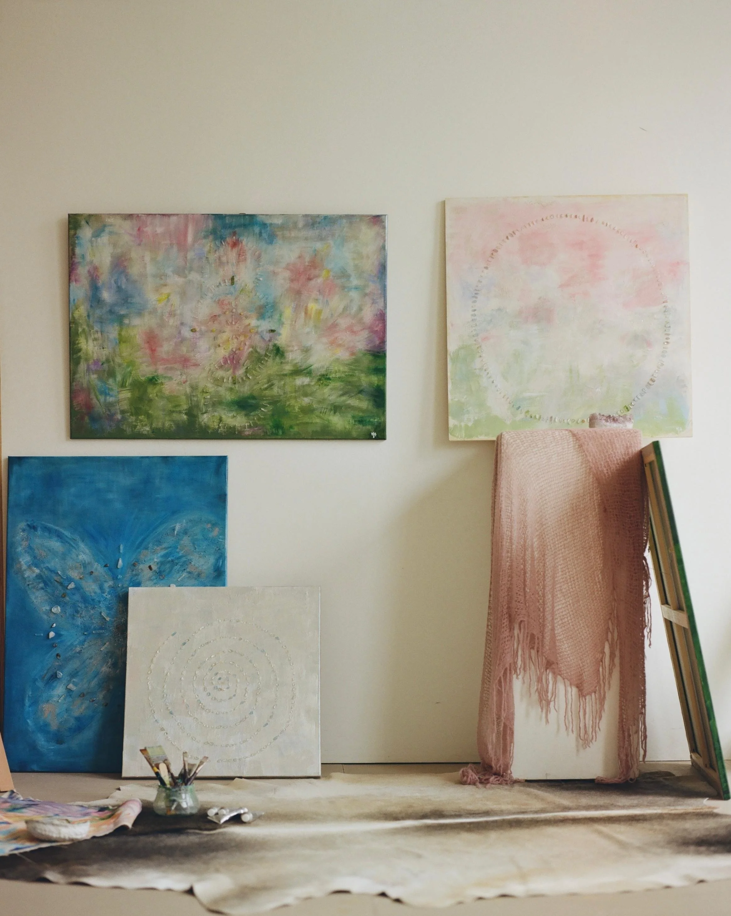 Geneva: I love naming my paintings! As a writer, I have an obsession with words, titles, and names. A lot of the time, a certain memory of mine will evoke inspiration for both a poem and an artwork. It’s fun to find a container or vessel for the memory. I recently finished a piece called ‘opal altar big sur’, which is inspired by a transformative spiritual experience I had hiking around Northern California last May.